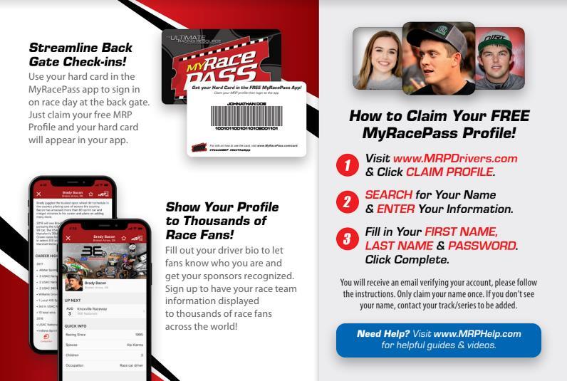 Once you have it claimed, you will be able to update your profile either via desktop or through the MyRacePass app. Also, you’ll have your digital MRP Hard Card to use at the back gate for participating MyRacePass tracks & series.