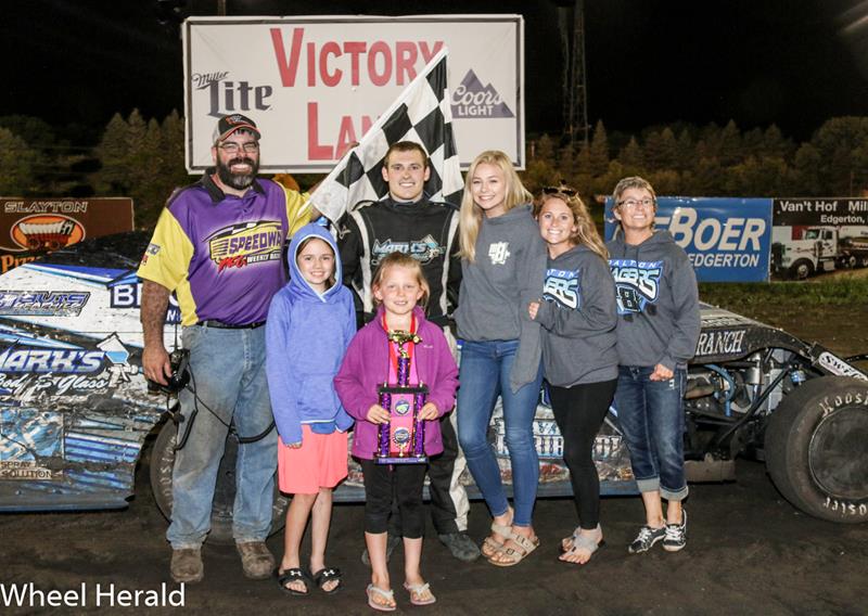 For the final feature of the night, the modifieds made their call for the 20 lap feature with Bruce Egeland and Jesse Rogotzke leading to the green. On the start, Rogotzke took the race lead. Dalton Magers quickly made his way to second and began to challenge for the lead. After an early caution, Magers secured the race lead and quickly pulled away from the field. Tyler Limgoes was able to pass Rogotzke for the second spot and looked to reel in Magers. After a late caution, Magers kept the lead. Limoges was right there and battled for the lead. Dalton Magers was able to hold on and take the win. Tyler Limoges finished second, Jesse Rogotzke finished third, and Don Gerritsen Jr finished fourth.